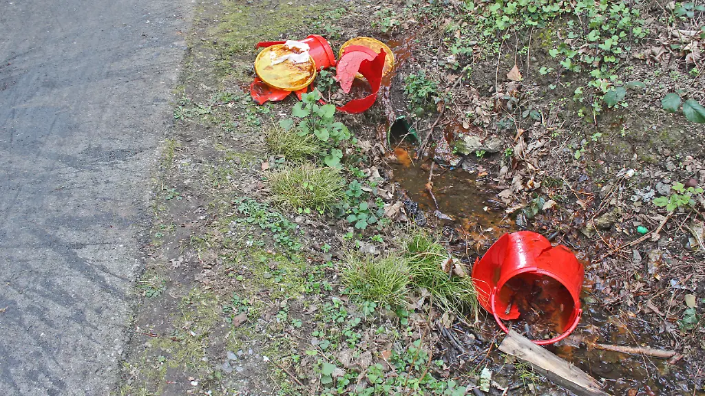 Die Polizei fand später an der Überführung und auf dem Radweg weitere Ketchup-Eimer, die ebenfalls offenbar herabgeworfen wurden.