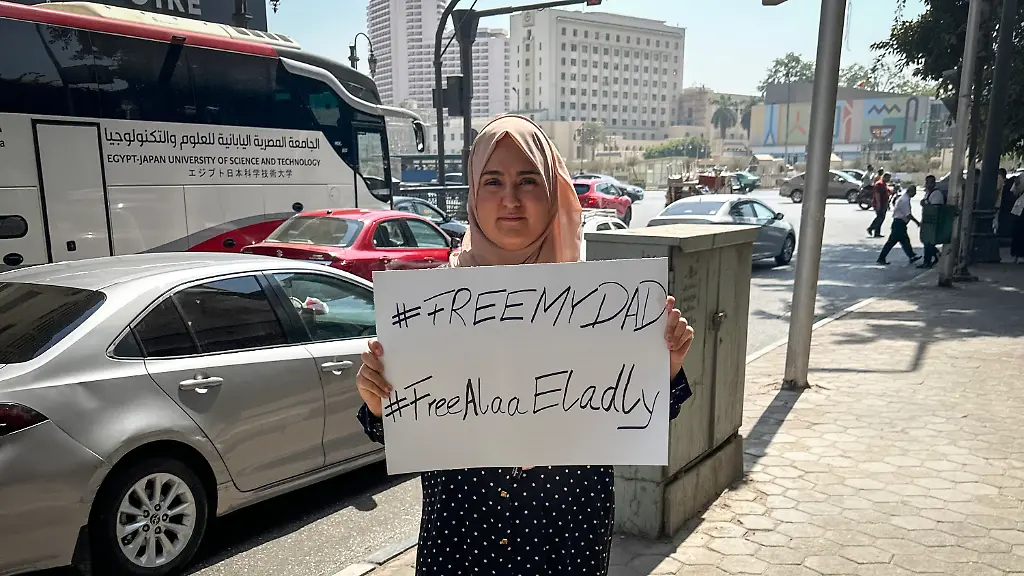 Fagr Eladly, die heute in Wiesbaden als Assistenzärztin arbeitet, sorgte 2015 für Aufsehen. Bei einer Pressekonferenz mit Kanzlerin Angela Merkel in Berlin beschimpfte sie Ägyptens Präsident Abdel Fattah al-Sisi als "Mörder". Jetzt ringt die Deutsch-Ägypterin um die Freilassung ihres Vaters. "Es ist einfach nur schockierend und skandalös", sagt Fagr Eladly über die Situation ihres Vaters Alaa. Der lebt ebenfalls in Deutschland und wurde kürzlich am Kairoer Flughafen festgenommen. "Es ist ein rein politischer Fall. Mein Vater sitzt umsonst in Haft, wird umsonst seiner Freiheit beraubt", sagt Eladly.