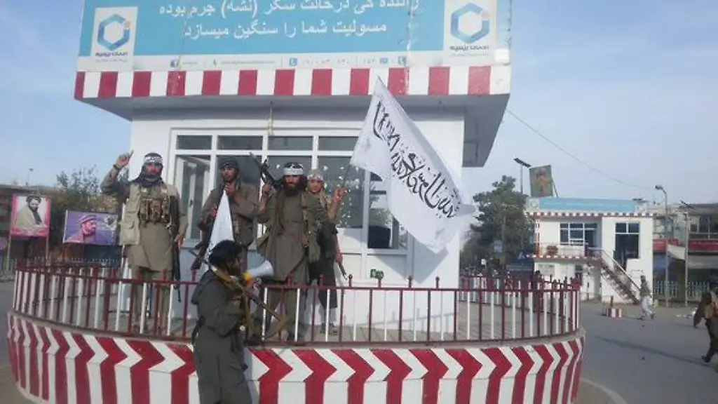 Ein auf Facebook veröffentlichtes Video zeigt ein Taliban-Mitglied vor einer Menschenmenge, die mit "Inschallah" (so Gott will) auf dessen Scharia-Ankündigung antwortet. Zu sehen ist auch, wie die Taliban ihre weiße Flagge auf dem zentralen Platz der Stadt hissen.