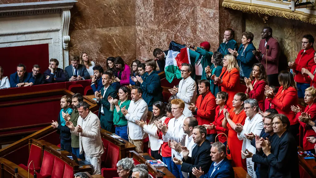 Die Abgeordneten von LFI, Grünen und Kommunisten hatten sich so ins Parlament gesetzt, dass sie mit ihren Kleidungsfarben von Weitem die palästinensische Flagge bildeten. Parlamentspräsidentin Yaël Braun-Pivet sprach eine Rüge gegen Kéké aus und unterbrach die Parlamentssitzung vorübergehend. Zudem betonte sie mit Blick auf die Kleidungswahl, dass Abgeordnete ihre Meinung "nur in mündlicher Form" kundtun sollten.