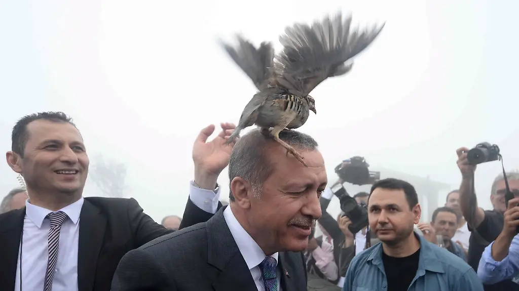 In der Provinz Rize am Schwarzen Meer wollte der Präsident am Freitag zwecks der Eröffnung des Gotteshauses einige Friedenstauben und auch ein Rebhuhn aufsteigen lassen - gerade letzteres landete dann jedoch auf seinem Kopf.