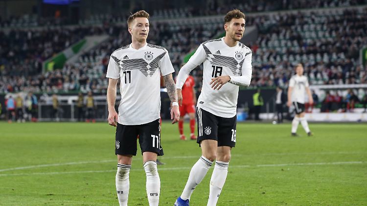 Marco Reus (l.) und Leon Goretzka überzeugten im DFB-Team gegen Serbien - und geben heute einen Ausblick auf die schwere Aufgabe in den Niederlanden.