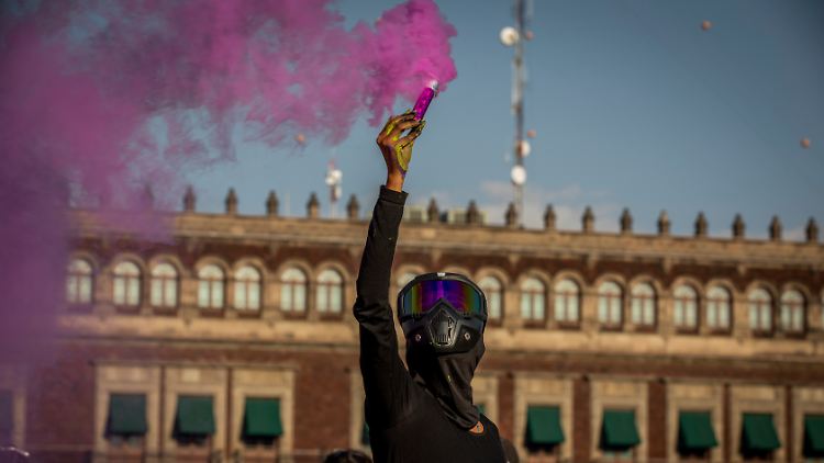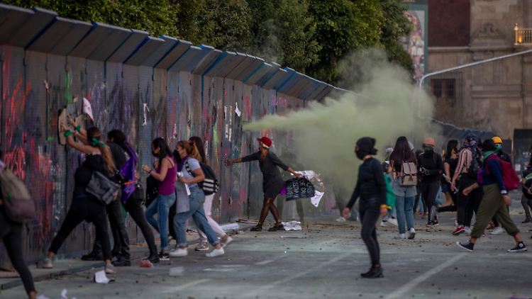 09.03.2022, 13:52 UhrIn Mexiko werden im Schnitt täglich zehn Frauen ermordet - ein Teil davon wird explizit als Femizid, also als Tötung aufgrund des Geschlechts, gewertet. Dagegen sind Frauen landesweit am Internationalen Frauentag auf die Straße gegangen - einige ließen ihrer Wut freien Lauf: Teilnehmende eines Protestzugs haben im nordmexikanischen Monterrey Feuer am Regierungspalast gelegt. Auf Videos in sozialen Medien war zu sehen, wie Teilnehmerinnen unter Jubel und Schreien der Umstehenden den Eingang des Gebäudes in Brand setzten. Flammen loderten am Boden der Tür und angrenzenden Fenstern auf.