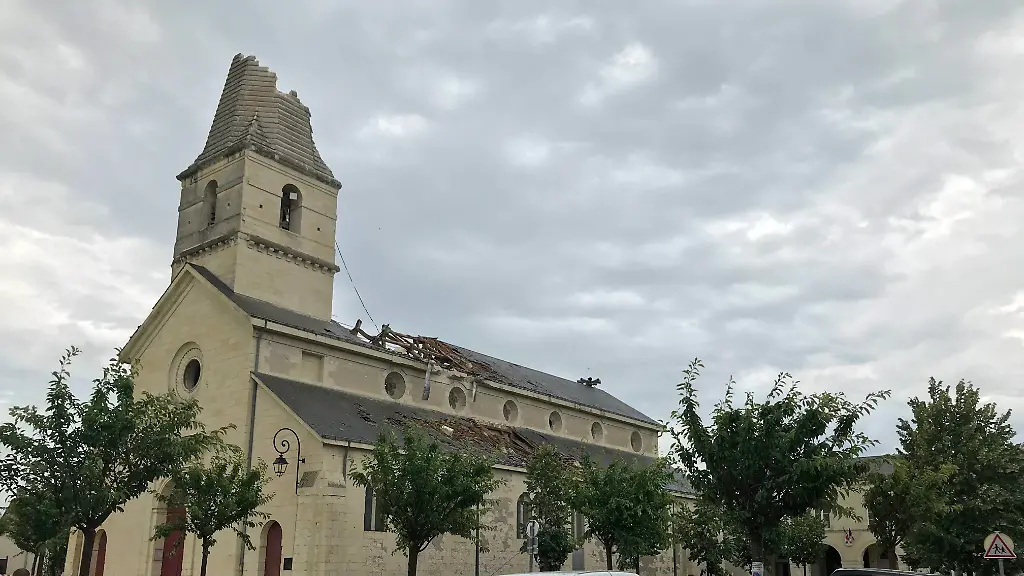 Der TagFranzösische Kirche verliert Turmspitze bei Tornado