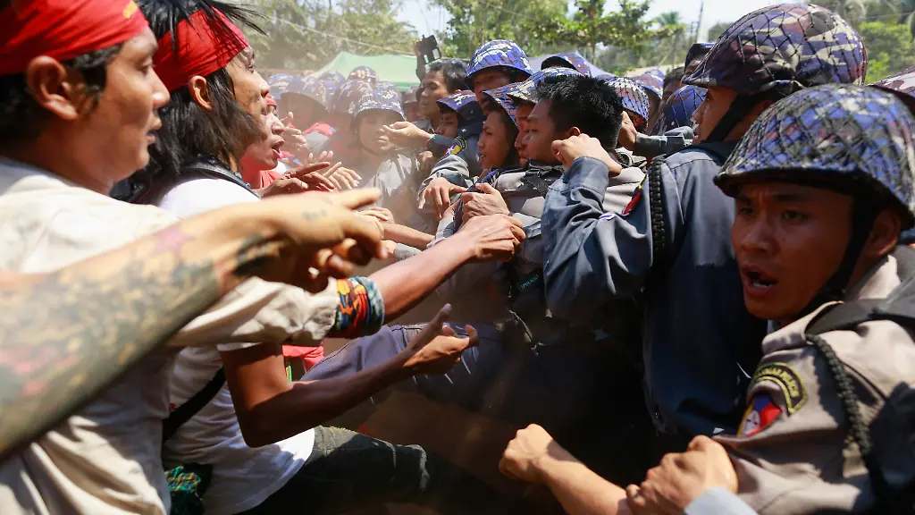 In der Stadt Letpadan, rund 150 Kilometer nördlich von Rangun, hatten rund 50 junge Leute versucht, mit Protestplakaten durch eine Polizeisperre zu brechen.