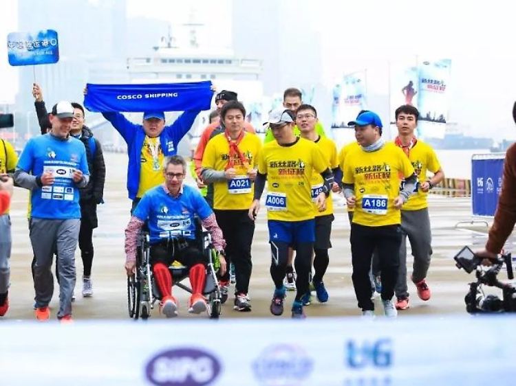 Die letzten Kilometer wurden von Shanghai ganz toll organisiert. Ich konnte nur den letzten Kilometer mit dem Rollstuhl Richtung Ziel fahren. Aber natürlich habe ich mit einem Tränchen im Auge die Ziellinie in ein paar eigenen Schritten überquert - ohne Rollstuhl. Das habe ich mir nicht nehmen lassen. Und es hat sich gelohnt, denn wir haben vorher gesagt: "Die Welt wird verrückt und wir müssen gucken, dass wir den Bezug als Menschen zueinander nicht verlieren".