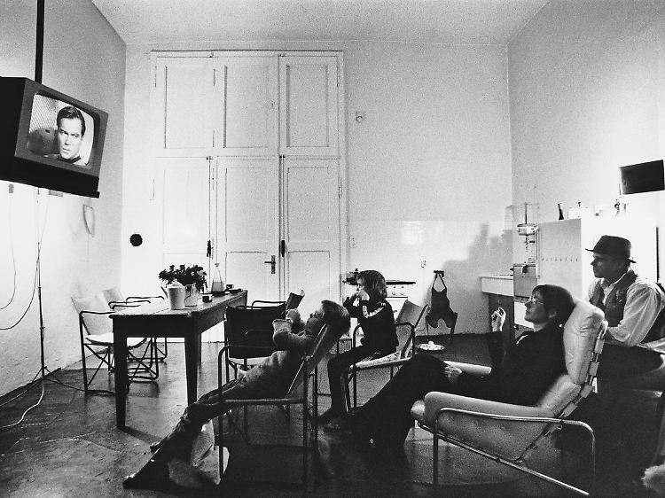 Familie Beuys 1972 im heimischen Wohnzimmer. Im Fernsehen läuft die Kultserie "Enterprise".