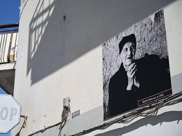 Der beschwerliche Weg dorthin lässt das nicht vermuten. Eine enge, kurvige Straße schlängelt sich hoch zu dem Ort in den schroffen Bergen Sardiniens. Schon am Ortseingang macht eine steinerne Tafel auf den Rekord aufmerksam. Im Dorf erinnert die Piazza Longevità (Platz des langen Lebens) daran. Die Rentner, die sämtliche italienische Regierungen und Krisen miterlebten, sind das Aushängeschild. Der Stolz der Gemeinde wird auch an der Hauptstraße sichtbar, die durch den Ort führt. Die pastellfarbenen Fassaden der Häuser sind verziert mit Schwarz-Weiß-Fotos der Methusalems mit deren Namen und Geburtsjahr.