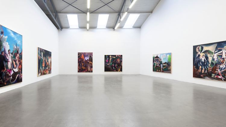 Rätselhafte Malereien von Neo Rauch in den großzügigen Leipziger Galerieräumen, die sich auf dem Gelände einer ehemaligen Baumwollspinnerei befinden.