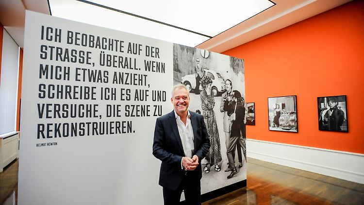 Neue Fotografien von Helmut Newton - gibt es die? "Ja", sagt Matthias Harder, Direktor und Kurator der Helmut Newton Stiftung. Er muss es wissen, schließlich verbringt er die Hälfte seiner Arbeitszeit in einem schier endlosen Archiv. Dabei stößt er immer noch auf unbekannte Bilder – auch 17 Jahre nach dem Tod des Fotografen. In der jüngst eröffneten Ausstellung sind von 300 Bildern knapp die Hälfte noch nie ausgestellt worden. Mit genau einem Jahr Verspätung, also zu Helmut Newtons 101. Geburtstag, feiert die Helmut Newton Stiftung im Berliner Museum für Fotografie diesen Ausnahme-Fotografen. Für ntv.de beleuchtet Matthias Harder Facetten Newtons in puncto Trendgespür, Chuzpe, Frauen, Fotografinnen und Vergänglichkeit. Dabei lässt Harder auch einiges von sich selbst aufblitzen.