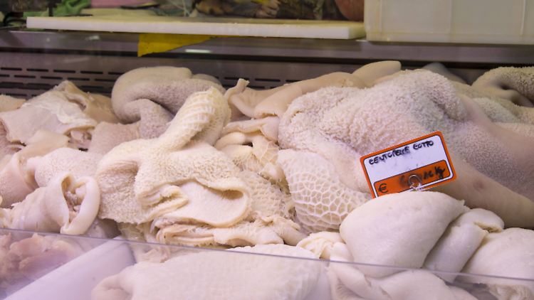 Weltweit wohl am bekanntesten sind Tripes à la mode de Caen, deren Authentizität die Confrérie Normande de la Tripière d’Or seit 1952 tapfer verteidigt. Sie werden mit Rinderfuß und Karotten in Brühe gekocht. Die regionalen Variationen mit anderen Zutaten sind unendlich. Diese reichen von Kalbsfüßen, Schweinskopf, Hirn, Zunge oder Wurst über Sahne, Käse oder Gänsefett bis hin zu Safran, Knoblauch, Zwiebeln, Petersilie, Bohnen oder Tomaten. Man kann Kuttel-Suppe, Kuttel-Gulasch und Kuttel-Rouladen machen oder sie, wie in Lyon üblich, panieren und in Butter braten. Tablier de Sapeurs heißt das dann. Überhaupt, die Namen. So poetisch: Tripous, trénels, manouls, pétéram. Und Deutschland? Da gibt es einen unsichtbaren, antikuttelistischen Schutzwall. Er trennt kuttelfreies Terrain im Norden und Osten von gewachsener Kuttelkultur im Süden und Südwesten. Dort heißen Kutteln Flecke, Kaldaunen, Sulz, Flauzen, Piepen oder Schnickerli. Am bekanntesten sind saure Kutteln aus Baden-Württemberg.
