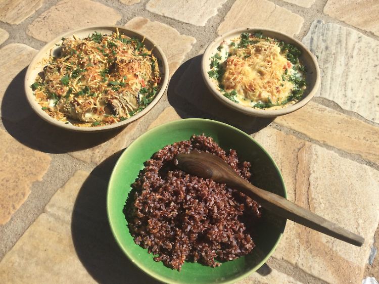 Der Rote Reis zeichnet sich nicht nur durch seinen nussigen Geschmack, sondern auch durch seine verdauungsfördernde Wirkung aus. Es handelt sich um Vollkornreis, der auch noch wichtige Spurenelemente hat. Man bekommt diese Reissorte im Reformhaus oder auch in guten Feinkostläden.