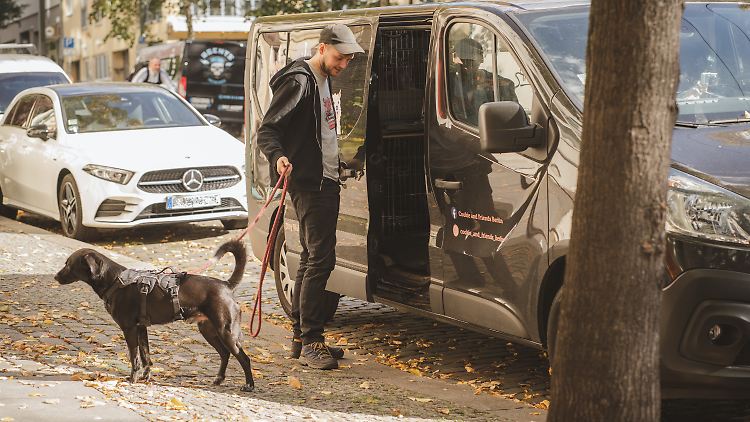Am nächsten Haus zeigt der elfte und letzte Gast mehr Mut beim Einsteigen, auch wenn er kaum größer als eine Katze ist. Er huscht vorbei an fünf großen Hunden auf der freien Ladefläche hinter der Tür, die ihn aufgeregt beschnuppern, und steigt in einen von vier Käfigen. Er ist erst seit zwei Wochen beim Dogwalking-Service Cookie & Friends Berlin. "Die Käfige sind für die Neuen und die Kleinen", erklärt Jan. Beim Namen des Neuzugangs ist sich der Hundesitter dann aber nicht mehr ganz sicher. "Hudosa? Hudini? Manchmal fühlt man sich wie ein Opa mit seinen Enkeln, wenn man mit den ganzen Namen durcheinanderkommt." Jan setzt sich ans Steuer und öffnet eine Anwesenheitsliste auf dem Handy. Name für Name prüft er, ob er auch niemanden vergessen hat. "Einer hat wegen Schnupfen abgesagt." Ansonsten seien sie komplett - Abfahrt!