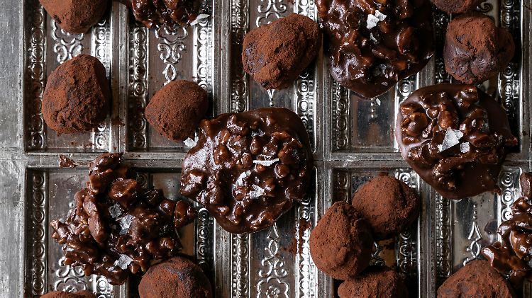 Schokolade satt: Kardamom-Zimt-Trüffel und Walnuss-Rosinen-Konfekt.