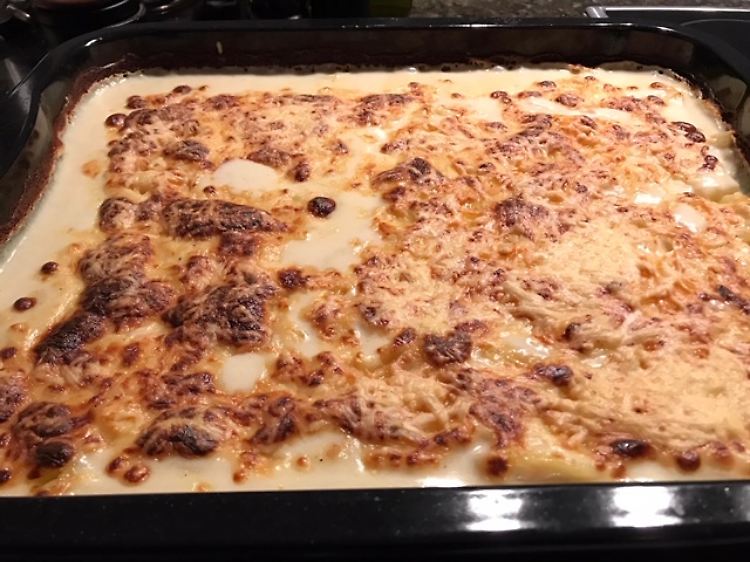 30 Minuten im Ofen bei hoher Hitze (220 Grad) überbacken.