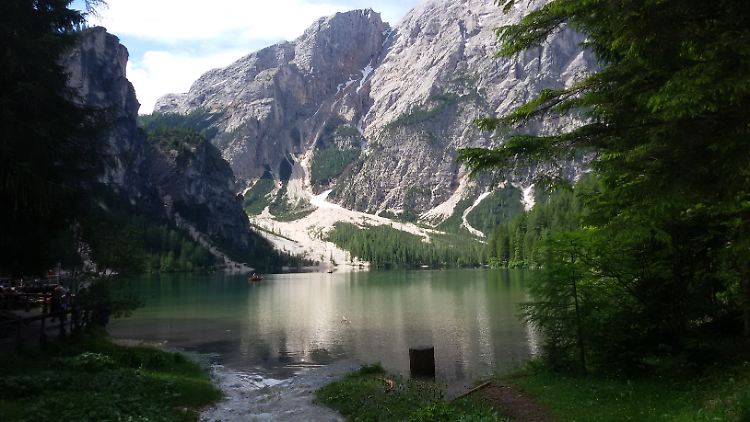 Touristisch leider sehr überlaufen, aber dennoch schön: der Pragser Wildsee vor dem Seekofel-Massiv.