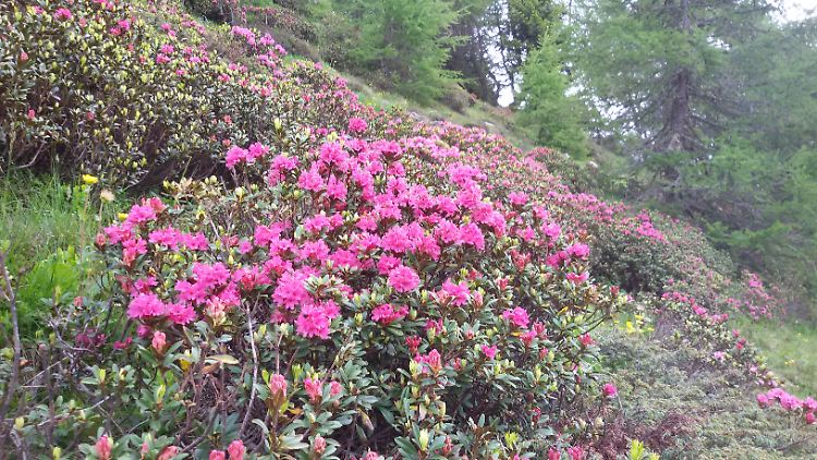 Almenrausch: Wenn die Alpenrosen, eine Azaleenart, blühen, schimmern die Hänge rosa.