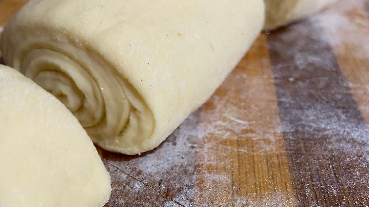2. Rollen Sie den Teig dann in einem Durchmesser von circa einem Zentimeter und befeuchten ihn mit der weichen Butter. Dann eine Rolle drehen und in vier bis fünf Zentimeter lange Stücken schneiden. Lassen Sie den Galushki-Teig unter einem sauberen Handtuch stehen und ziehen. Am besten so bedecken, dass der Teig sich nicht allzu sehr entfalten kann.