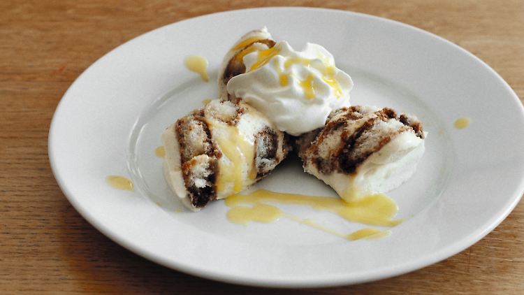 Mit einem Löffel ausstechen und mit geschlagenem Schlagobers anrichten. Wer möchte, kann noch 1 Schuss Eierlikör über die Creme gießen.