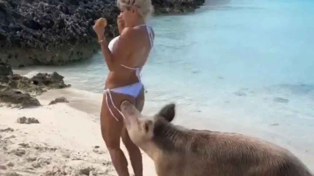 Die unbewohnte Gegend ist berühmt für ihre am Strand lebenden Schweine und zieht jährlich Tausende Touristen an, die gemeinsam mit den Tieren im kristallklaren Wasser schwimmen wollen. So auch Lewin, die ein paar exotische Fotos von sich machen lassen wollte. Für sie endete das Shooting allerdings nicht so glamurös.