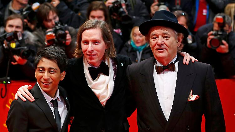 Bei der Weltpremiere wurde es richtig voll auf der Bühne des Berlinale-Palasts. Anderson brachte Stars wie Ralph Fiennes, Jeff Goldblum, Saoirse Ronan, Tilda Swinton, Léa Seydoux und Willem Dafoe mit. "Komm' in die Hufe, Bill", rief der US-Regisseur auf Deutsch, als er seinen Schauspieler Bill Murray aus dem Publikum holte.