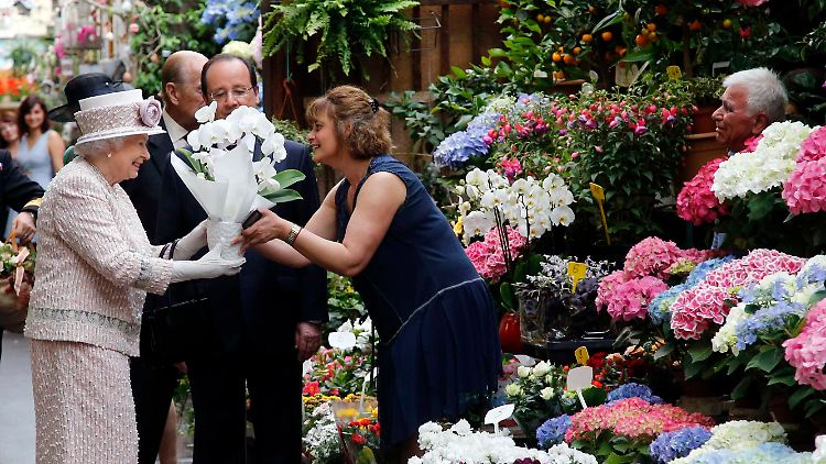 Der Besuch des Blumenmarktes schloss den fünften Staatsbesuch von Königin Elizabeth II. in Frankreich ab. Die 88 Jahre alte Monarchin hatte am Freitag an der Gedenkfeier zum 70. Jahrestag der Landung der Alliierten in der Normandie teilgenommen.