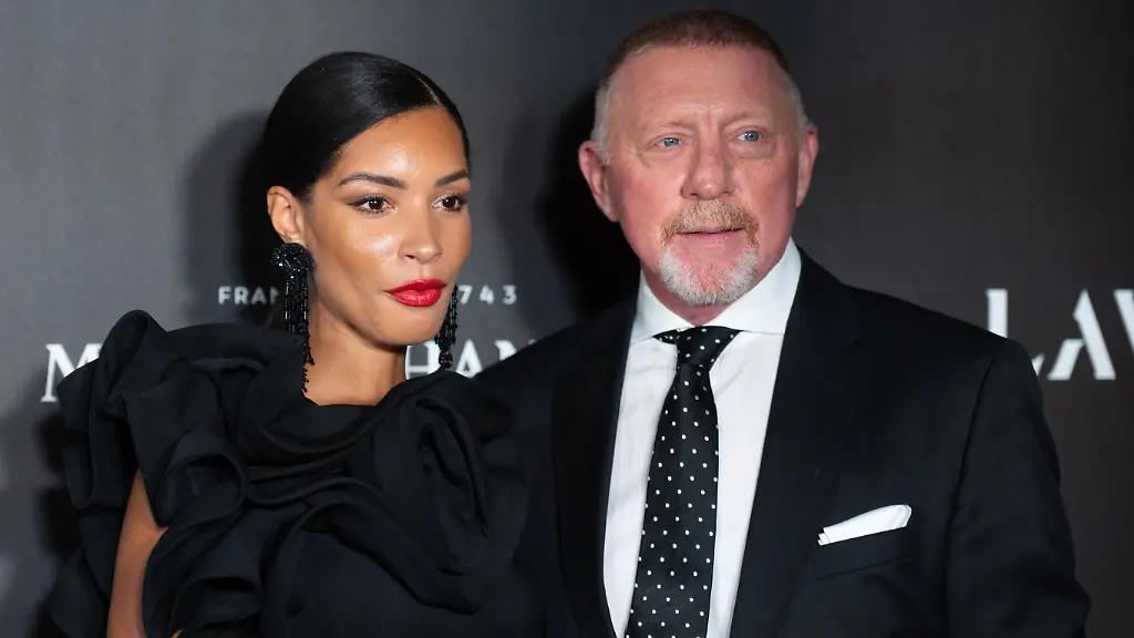 Boris Becker zeigte sich an ihrer Seite in einem eleganten schwarzen Anzug mit weißem Hemd und weißem Einstecktuch. Dazu kombinierte er eine gepunktete Satinkrawatte in Schwarz-Weiß.