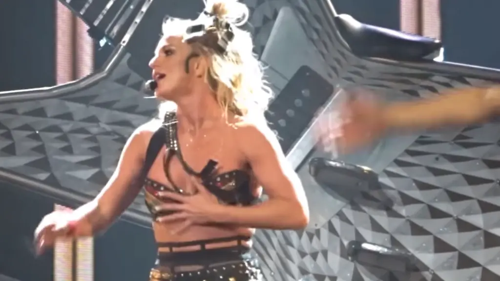Bei ihrer Vegas-Show im Casino "Planet Hollywood" performt die 34-jährige Spears ihre Coverversion von Joan Jett & The Blackhearts' "I love Rock 'n' Roll", als sich auf einmal der Halterriemen ihres Oberteils löst. Das ohnehin schon freizügige Ledergeschirr droht noch etwas freizügiger zu werden. Eine Aufnahme aus dem Publikum zeigt, wie sich Spears erschrocken an die Brust greift, um den BH zu halten. Schließlich müssen ihr zwei Tänzer zu Hilfe eilen.