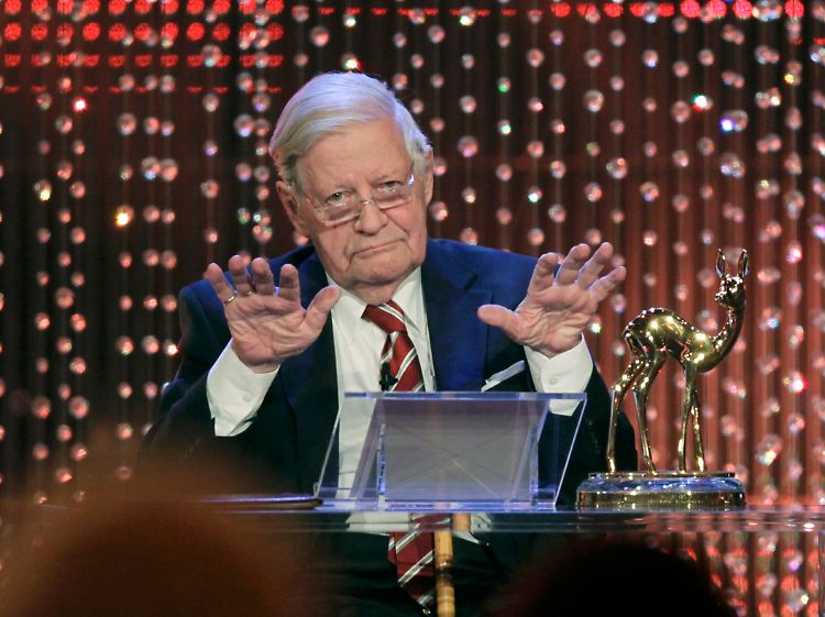 Die Politik bildete auch den Rahmen für einen der Höhepunkte der Gala: die Vergabe des "Millennium-Bambis" an Alt-Bundeskanzler Helmut Schmidt. Der SPD-Politiker wurde mit minutenlangem stehendem Applaus empfangen. Schmidt rief dazu auf, die friedliche Zusammenarbeit der Nationen zu pflegen. "Dies bleibt der entscheidend wichtige Teil aller unserer Pflichten", sagte der 92-Jährige. Deutschland sei heute stabiler als je zuvor. Die Krise der Europäischen Union (EU) müsse mit Geduld gelöst werden.