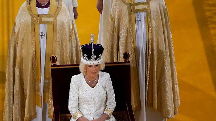 Wenig später wurde auch Camilla zur britischen Königin gekrönt. Welby setzte der Frau von König Charles III. die Krone von Queen Mary auf. Außerdem wurde Camilla ein Ring überreicht, der wie beim König symbolisiert, dass sie mit dem Land nun "verheiratet" ist.