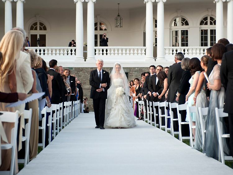 Die Feier vereinte Elemente des jüdischen Glaubens des Ehemannes und des protestantischen seiner Frau. Die Clintons bestätigten auch, was viele vermutet hatten: Gefeiert wurde in Aston Courts, dem Anwesen des legendären Millionärs John Jacob Astor. Der Hotelier ("Astoria") und Erfinder war 1912 beim Untergang der "Titanic" ums Leben gekommen. Angeblich hat die Feier mehrere Millionen Dollar gekostet, andere Quellen sprechen allerdings von "weniger als einer Million".