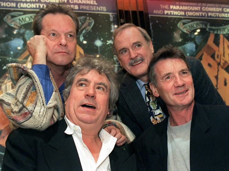 Die Comedy-Stars Terry Gilliam und John Cleese ((hinten l-r) sowie Terry Jones und Michael Palin (vorne l-r) gründeten Monty Python 1969 (undatiertes Archivfoto).
