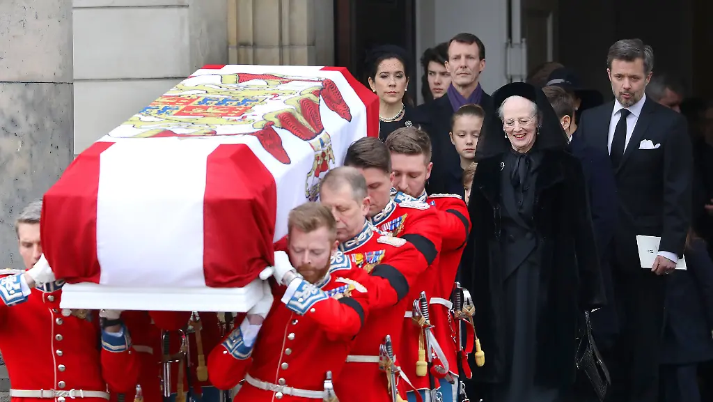 Dieser wird, umhüllt von der dänischen Flagge mit dem Wappen des Prinzen, am Ende der Trauerfeier von acht rot Uniformierten aus der Kirche getragen. In diesem Moment werden alle Flaggen im Land, die eine Woche auf halbmast wehten, wieder voll gesetzt. Die Kirchenglocken läuten. Es klingen Salutschüsse. Und Margrethe II. lächelt wieder.