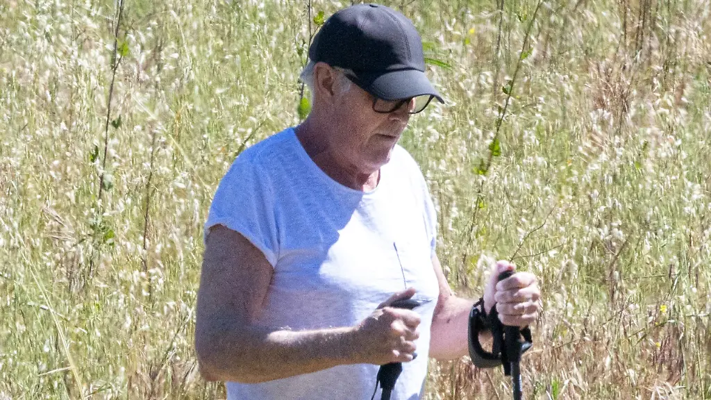 Die Fotos entstanden in Calabasas im US-Bundesstaat Kalifornien. Zu sehen ist, wie der einstige "Baywatch"-Star mit zwei Trekking-Stöcken durch eine Wiese streift. Seine Frau scheint ihn dabei gelegentlich zu stützen, indem sie ihn am Arm berührt oder an seinen Rücken fasst.