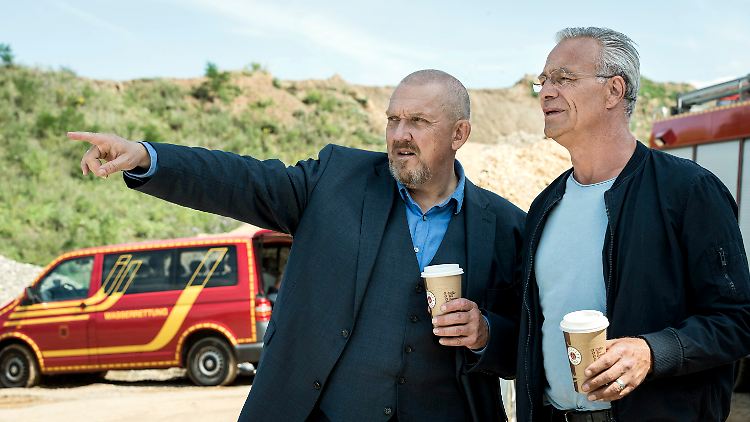 Die Kommissare Schenk (Dietmar Bär, l.) und Ballauf (Klaus J. Behrendt) finden eine Leiche in einem Kölner Baggersee.