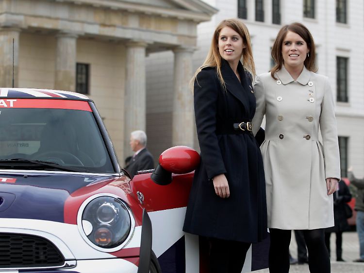 Zuvor hatten Beatrice und Eugenie in Berlin für einen Besuch in ihrer Heimat geworben. Die Prinzessinnen besuchten die Hauptstadt, um die "Great Britain Mini Tour 2013" vorzustellen. Die Königlichen Hoheiten, die 2011 bei der Hochzeit von William und Kate mit sehr schrillen Hüten aufgefallen waren, erschienen ganz ohne Kopfschmuck zur Pressekonferenz in der britischen Botschaft in der Nähe des Brandenburger Tores.