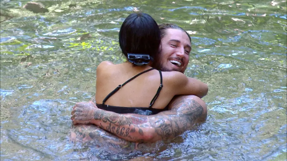 Und weil so schönes Wetter ist, gehen die beiden im Weiher baden. Unser RTL liefert epische Szenen à la "Dirty Dancing". Schade, dass Leyla an diesem Tag nicht auch noch eine Honigmelone getragen hat, aber dafür hat unser Urwald-"Baby" sich filmreif ihren Po rasiert: "Da waren ja schon mehr Haare, als ich auf dem Kopf habe." Unterm Wasserfall seifen die sanften Turteltäubchen sich gegenseitig den Rücken ein. Einen Haken hat die frische Liebelei aber für Leyla: Der Mike scheint schüchtern zu sein. Er versucht gar nichts! Nicht mal ein klitzekleines Küsschen!