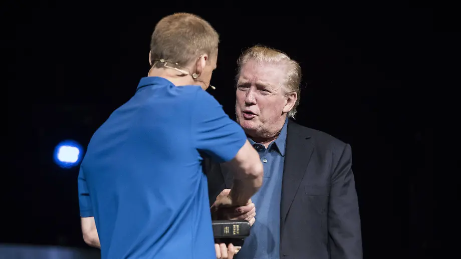 US-Präsident Donald Trump hat mit seiner neuen Frisur bei einem Auftritt in einer Kirche im US-Bundesstaat Virginia Aufsehen ausgelöst. Der 72-Jährige betrat die Bühne am "Tag des Gebets für den Präsidenten" zum Erstaunen des Publikums mit glatt zurückgekämmten Haaren. Anhänger des Präsidenten spekulierten daraufhin, ob sich der US-Präsident in dieser Aufmachung auch zum anstehenden Staatsbesuch in Großbritannien zeigen wolle.