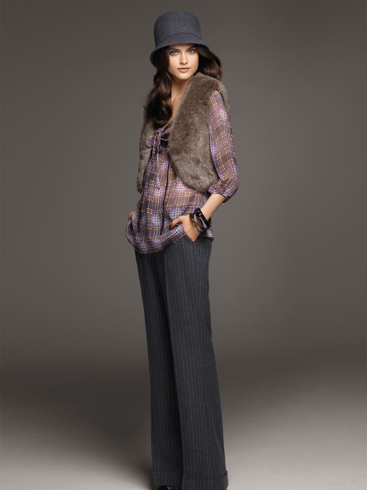 "Ich habe alle wohl ein bisschen verblüfft, als ich sagte, dass wir dieselbe Kundin erreichen wollten, ob das Produkt nun ein Heft ist oder Kleider", meint Delorme. Sonja Blömker und sie arbeiteten gleich eng mit den Handelsvertretern zusammen, kreierten modische Gesamtlooks, die Lust auf Mode machten. "Wir haben den Vertretern zum Beispiel den Nadelstreifenanzug in verschiedenen Varianten gezeigt", erzählt Delorme. "Mal mit einer weißen Bluse für den Job, mal mit dem Fell oder der Chiffon-Bluse für den Abend. Ich wollte zeigen, was alles in diesem Produkt steckt."