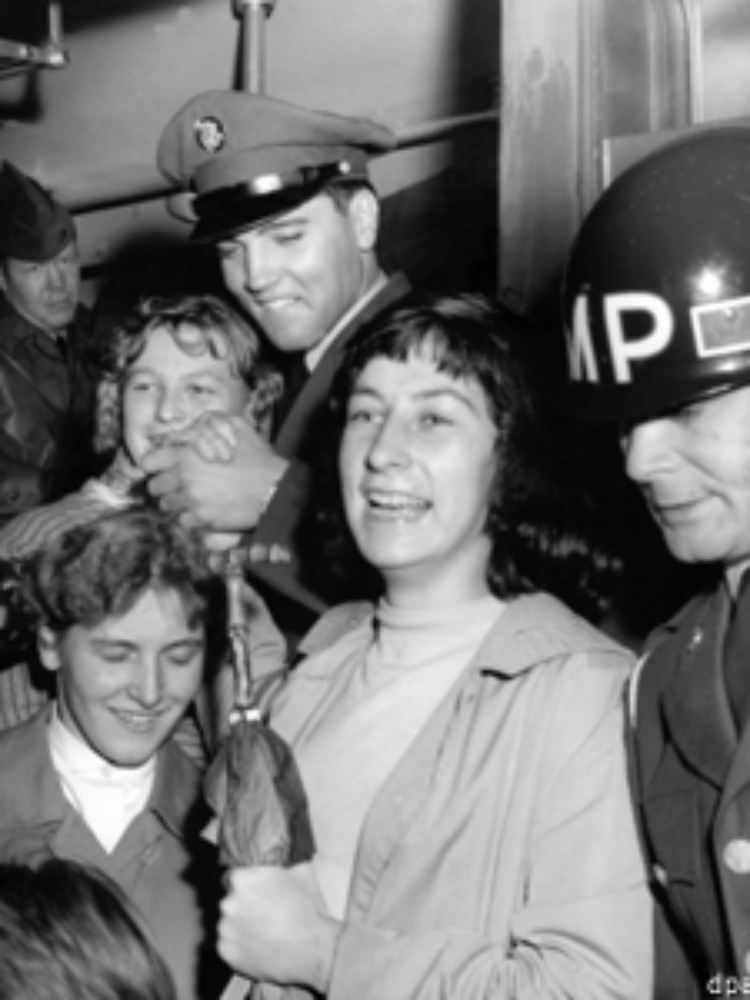 Die sehnsüchtig erwartete Ankunft von Elvis Presley im hessischen Friedberg am 1. Oktober 1958 war für seine Fans enttäuschend. "Heerscharen von Jugendlichen hatten sich am Friedberger Bahnhof eingefunden, um den Zug aus Bremerhaven mit Elvis und Hunderten seiner Kameraden zu empfangen, aber der hielt hier gar nicht", sagt Hans-Ulrich Halwe, Ehrenvorsitzender des Elvis Presley Vereins Bad Nauheim-Friedberg. Der Zug mit dem "King of Rock 'n' Roll" kam zwar um 19.32 Uhr in Friedberg an, sei dann aber etwa zwei Kilometer weiter in die US-Kaserne "Ray Barracks" gerollt. "Hier stieg Elvis an einer Verladerampe für Panzer aus."