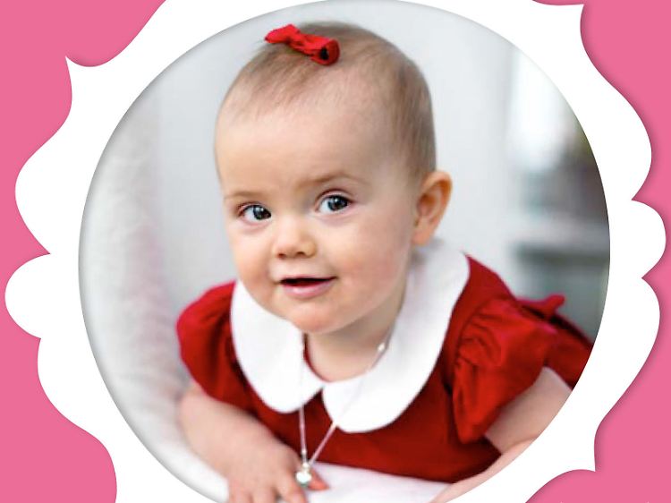 Keck blickt die kleine Prinzessin vom Einband des Buches "Estelle - Das Buch über mein erstes Jahr".