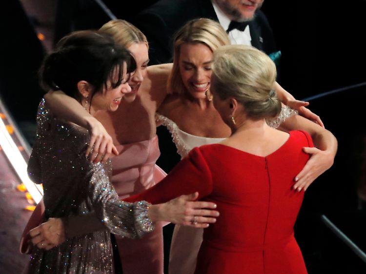 Sally Hawkins, Saoirse Ronan, Margot Robbie und Meryl Streep freuen sich so, als hätten sie gewonnen. Haben sie ja auch.