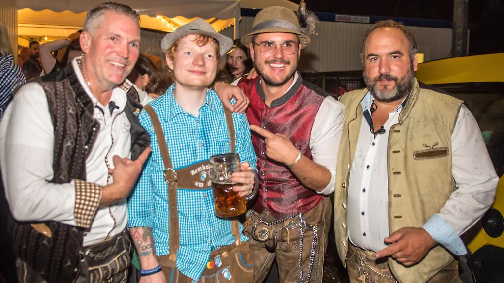 Passend in Lederhose und Filzhut gekleidet überrascht Ed Sheeran die Besucher des Frankfurter Oktoberfests auf besondere Art. Nach seinem Konzert im Deutsche Bank Park, ist dem britischen Superstar offenbar nicht nur nach Bier und Brez'n.