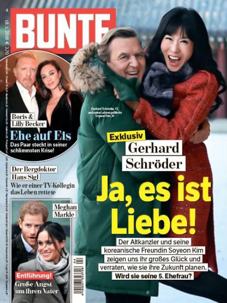 Womit wir beim zweiten Themenkomplex wären, um den sich beim Altkanzler inzwischen alles zu drehen scheint. Sein Privatleben. Schröders offensichtlich neuer Hauspostille "Bunte" sei Dank, reihen sich die News über sein Liebesleben, seine Hochzeit im Mai und die Zukunftspläne mit seiner Kim mittlerweile bestens in die Nachrichten über Sarah Lombardis neuen Lover, die Ehe eines ehemaligen "Bachelors" oder das jüngste Kardashian-Po-Selfie ein. Fehlt eigentlich nur noch, dass Soyeon Kim schwanger wird und wir brandaktuell aus dem Kreißsaal über das frische Eltern-Glück neben Sila Sahins Beinahe-Sturzgeburt im Flugzeug berichten dürfen.