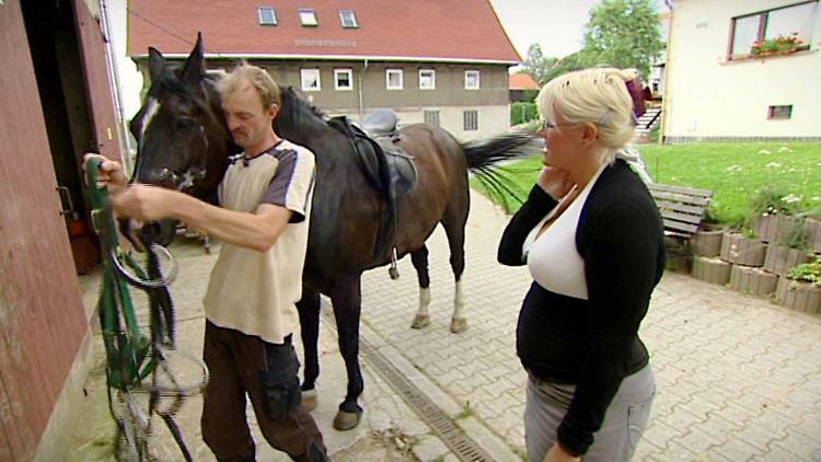 Es handelt sich um Gerold und Petra, und da bahnt sich was an, mein lieber Herr Gesangsverein. Die beiden betonen, als würden sie dafür bezahlt werden, wie doll sie doch im Team funktionieren. Und tatsächlich, beim Kalben geht es hier zur Sache. Beherzt fasst der glückliche Gerold einer Kuh in die Eingeweide, schlingt geschickt ein Seil um das noch zu gebärende Kalb und zerrt es mithilfe einer Winde und der praktischen Petra an das trübe Licht der Welt. Geschafft, stolz darf auch hier die Land-Assistentin dem neuen Leben einen Namen verpassen ("Browneye" soll es in diesem Fall heißen), und damit hat sie sich zum kleinen Tierfreund der Folge katapultiert, besorgte sie doch schon den Hennen auf dem Hof des frischen Friesen einen schönen großen Hahn, "damit die Mädels nicht so alleine sind". Und die Petra kann noch etwas: Mit der Kamera flirten. Kein Wunder, möchte man meinen, hat sie doch bereits bei "Schwiegertochter gesucht" ihr Glück auf die Probe gestellt. Dort jedoch verabschiedete sie sich 2007 mit den Worten: "Ich muss mir noch ein paar Gedanken machen", und tauchte erst wieder in dieser Staffel von "Bauer sucht Frau" auf.