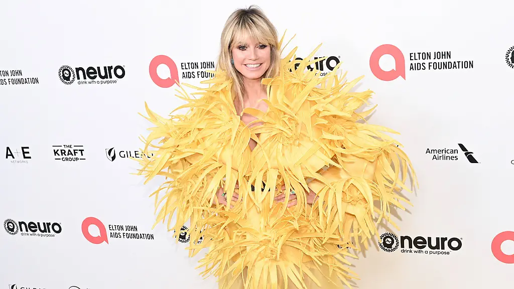 Heidi Klum stach aus der Menge heraus, als sie mit ihrem Ehemann Tom Kaulitz an der alljährlichen Oscar-Party teilnahm, bei der am Sonntag in West Hollywood Geld für die Elton John AIDS Foundation gesammelt wurde. Die "Germany's next Topmodel"-Chefin hatte sich zu diesem Anlass in ein knallgelbes Kleid aus großen Federn und mit einer halbdurchsichtigen Schleppe geschnürt.