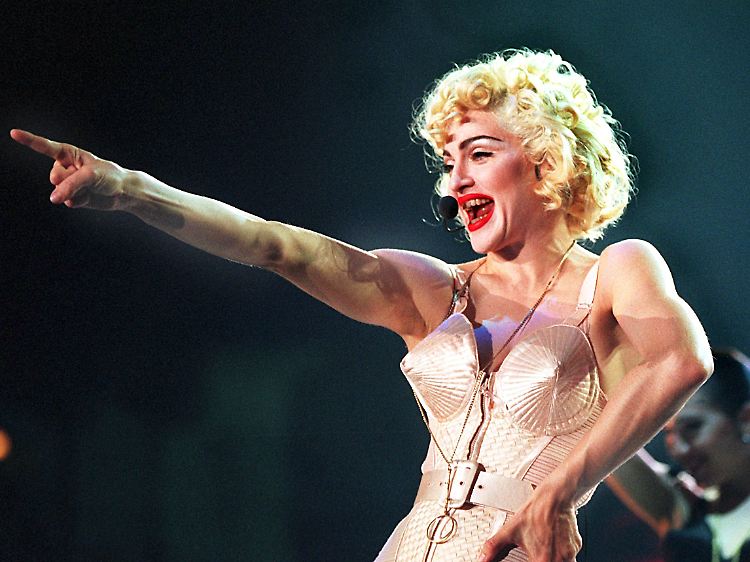 Auf der "Blond Ambition World Tour" im Gaultier-Bustier: Es war mit rund 130 Kreationen des französischen Designers 2013 im Brooklyn Museum in New York zu sehen.