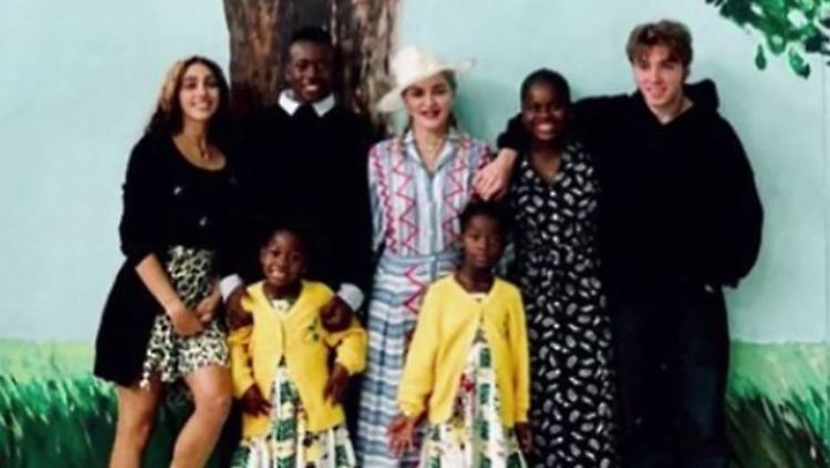 Glückliche Mutter: Mit Lourdes und Rocco (außen) und den Adoptivkindern David, Mercy und den Zwillingen Estere und Stella.