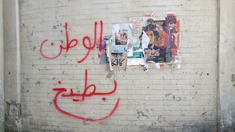 Trojanisches Pferd auf Arabisch: Bei den Dreharbeiten zu "Homeland" in Deutschland haben Künstler den Machern Graffiti-Botschaften untergejubelt, die die US-Serie aufs Korn nehmen. Sie waren nach eigenen Angaben für die aktuelle Staffel engagiert worden und sollten authentische arabische Schriftzüge an den Wänden eines Sets für ein Flüchtlingscamp anbringen.