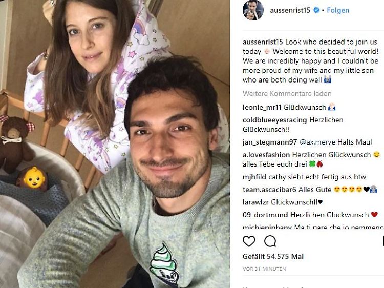 Papas Hummels schreibt jedenfalls: "Guckt, wer sich entschieden hat, heute zu uns zu kommen. Wir sind unglaublich glücklich und ich könnte auf meine Frau und meinen Sohn nicht stolzer sein. Sie haben das beide toll gemacht." Wer sich über diese merkwürdigen Satzkonstrukte wundert - nicht wundern: Bayern-Kicker Hummels alias aussenrist15 schreibt auf Instagram auf englisch for his international followers.
